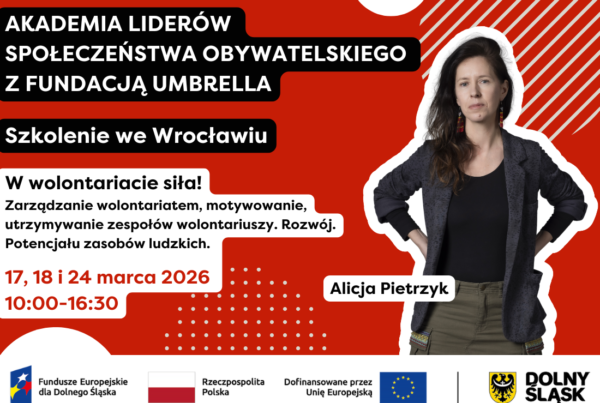 Chcesz wziąć udział w szkoleniu? Wypełnij formularz zgłoszeniowy oraz zgłoś się do Akademii Liderów Społeczeństwa Obywatelskiego z Fundacją Umbrella! Więcej informacji, w tym formularze zgłoszeniowe do Akademii, są dostępne na naszej stronie internetowej