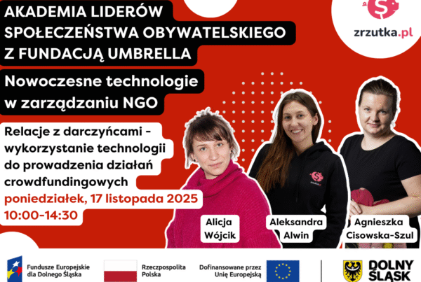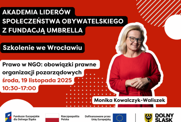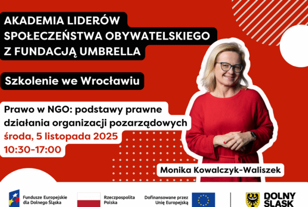 Jeśli tak — zapraszamy na jedyne w tym roku szkolenie „W wolontariacie siła! – Zarządzenie wolontariatem, motywowanie, utrzymywanie zespołów wolontariackich. Rozwój potencjału zasobów ludzkich”, podczas którego poznasz praktyczne narzędzia i strategie wzmacniania działań wolontariackich. Dowiesz się, jak planować, rozwijać i motywować, by wolontariat stał się silnym filarem Twojej organizacji. A to wszystko w ramach naszego cyklu trzech spotkań szkoleniowych, które odbędą się w środy: 5, 12, 19 listopada 2025 r. w godz. 10:00-16:30 w siedzibie Fundacji Umbrella (ul. Legnicka 65 we Wrocławiu) w ramach Akademii Liderów Społeczeństwa Obywatelskiego z Fundacja Umbrella.