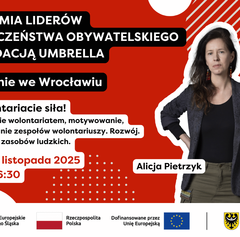Akademia LiderówWzmocnienie potencjału NGO Akademia Liderów Społeczeństwa Obywatelskiego z Fundacją Umbrella: szkolenie we Wrocławiu z wolontariatu
