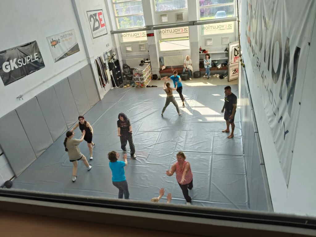 Organizacja zajęć z samoobrony dla kobiet migrantek. Kobiety, a szczególnie migrantki, narażone na przemoc, nie mają odpowiednich umiejętności aby zadbać o swoje bezpieczeństwo. Do groźnych sytuacji często dochodzi w miejscach publicznych, w miejscach uczęszczanych, także w środkach komunikacji publicznej. Dlatego zaprosiliśmy 12 Pań do wzięcia udziału w dwudniowym intensywnym kursie prowadzonym przez doświadczonych trenerów samoobrony. Zajęcia poprowadził współpracujący z Fundacją trener i społecznik Paweł Szubart.